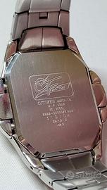 Vendo splendido Citizen Ana-Digi Temp ref. 8988. Fa parte della celebre linea “Ana-Digi Temp”, introdotta da Citizen nei primi anni ’80 (circa 1981–1982), innovativa per l’epoca grazie alla combinazione di analogico, digitale e termometro in un unico orologio. ⚙️ Dati tecnici Numero di calibro: 8898 Tipo: Orologio al quarzio a combinazione (Analogo e Digitale) Caratteristiche principali: Ora, calendario, allarme, cronometro da gara, ora duplice, misurazione della temperatura Funzioni aggiuntive: - Funzione di illuminazione - Funzione del carillon (chime) - Funzione del termometro (visualizzazione di commutazione fra gradi centigradi e Fahrenheit) - Funzione di segnalazione di bassa carica della batteria Batteria: N. 280-30, Codice batteria: SR1120W Cassa in acciaio inox Bracciale integrato originale in acciaio inox 📌 Condizioni Buone condizioni generali Batteria funzionante Tutte le funzioni operative Presenti manuale d’istruzioni e maglia extra per il cinturino Scatola non disponibile