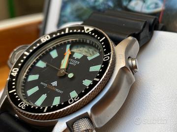 Orologio revisionato in centro ufficiale citizen anni fa, quando la casa madre ancora forniva assistenza per questo modello; oggi Citizen non offre più assistenza né pezzi di ricambio per questo orologio. All’epoca era stato revisionato, cambiata la guarnizione, fatto prova di impermeabilità e cinturino nuovo. Dopodiché non è stato più usato al polso per davvero molti anni (conservato SENZA BATTERIE). L’orologio è completamente funzionante sia nella parte elettronica che in quella digitale. Ho fatto foto molto dettagliate per far sì che ogni particolare fosse visibile, l’orologio dal vivo risulta pressoché perfetto, bello e davvero poco usurato; molto raro da trovare in queste condizioni. Vendo l’orologio insieme alla sua scatola e controscatola originali, batterie nuove.