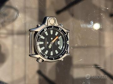 Vendo in lotto Citizen Aqualand per pezzi di ricambio. L’orologio funziona, ma solo la parte digitale, non le lancette (va riparato). É in condizioni estetiche di pari nuovo e ha tutte le viti. Gli altri due pezzi comprendono 2 casse (una bicolore e una acciaio) con ghiere, un fondello, diversi pulsanti e due viti. I due cinturini sono originali citizen. Scambio a mano su Roma