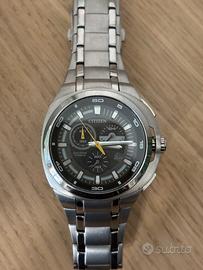 Vendo per poco utilizzo orologio Citizen AT2021-54H con Scatola e targhetta originale. Il vetro del quadrante non ha graffi mentre il cinturino presenta alcuni graffi. Orologio tenuto sempre in scatola.