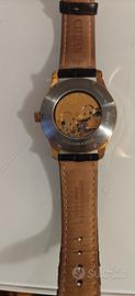 Il Citizen NJ0118-16A è un orologio automatico dallo stile classico della collezione Of 2020. Caratteristiche principali: Movimento: Meccanico a ricarica automatica (Calibro 8210) con 21 rubini e 40 ore di riserva di carica. Cassa: Acciaio inossidabile con finitura placcata oro rosa, diametro 40 mm e spessore 12 mm. Quadrante: Silver/bianco con indici applicati e datario a ore 3. Vetro: Minerale piatto. Fondello: Trasparente (oblò con rotore a vista). Cinturino: Pelle marrone con fibbia ad ardiglione. Impermeabilità: 5 bar (50 metri). Il prezzo di listino si aggira sui 179 €, rendendolo un'opzione economica per chi cerca un segnatempo elegante e affidabile. L'orologio è perfetto neanche un segno o graffio. Acquistato nel 2020 pagato 192 euro. Usato poche volte in quanto ho diversi orologi essendo la mia passione. Vengo ad un prezzo onesto. È come nuovo.