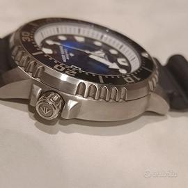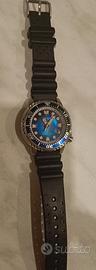 CITIZEN BN0166-01L PROMASTER Unite with Blue Collection. indossato per prova e mai più indossato estratto dalla scatola solo per ricaricarlo alla luce sistematicamente è quindi pari al nuovo. Orologio da collezione a tiratura limitata Fujifilm Tribute. Citizen Promaster "UNITE with BLUE", referenza BN0166-01L. L'orologio fa parte di un'edizione limitata a soli 7.000 pezzi a livello mondiale, rilasciata da Citizen nel giugno 2023 per celebrare la bellezza e la fragilità degli oceani. La caratteristica più affascinante di questo modello è il suo quadrante, realizzato con una speciale vernice strutturata in policarbonato riciclato che crea un effetto iridescente unico. Le sue sfumature di blu, che variano in base all'angolo della luce, richiamano in modo vivido i riflessi del mare e lo rendono un pezzo unico nel suo genere. L'orologio è un Diver's professionale certificato ISO 6425 ed è alimentato dal movimento Eco-Drive, che garantisce una ricarica infinita tramite qualsiasi fonte di luce, eliminando la necessità di sostituire la batteria. La cassa in acciaio satinato, con un diametro di 44 mm, ospita una ghiera girevole unidirezionale e un fondello a vite, assicurando una robustezza e un'impermeabilità fino a 200 metri. Prezzo intrattabile