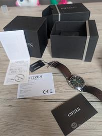 Questoorologio Citizen Automatic NH8391-51Xda uomo ha una cassain acciaio inossidabile, di forma circolare e di colore argento. Il bracciale è inacciaio inossidabilee la lunetta è grigia. Quadrante di colore verde. Vetro minerale con trattamento antiriflesso, movimentoautomaticoe display analogico. Fondello trasparente avvitato che permette di vedere il movimento. Impermeabilità: 5 ATM. Diametro: 40,2 mm. Peso: 137 gr. Funzioni: 3 lancette luminescenti e calendario completo.