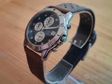 Citizen Chronograph, un orologio dalla forte personalità vintage e dalla meccanica super affidabile. Perfetto come segnatempo quotidiano per chi ama gli oggetti che raccontano una storia. Interventi eseguiti (marzo 2026): Batteria nuova. Guarnizione fondello ripristinata con sigillante. Cinturino nuovo effetto vissuto. Pulizia generale. Caratteristiche principali: Movimento crono Miyota 0S60. Cassa cromata 38mm circa. Quadrante grigio scuro con contatori a contrasto. Fondello e corona a pressione. Condizioni estetiche: L'orologio funziona bene ma presenta segni di usura, segni leggeri su vetro e scolorimenti sulla cromatura della cassa coerenti con un uso prolungato. Le foto mostrano nel dettaglio ogni segno e sono parte della descrizione. Condizioni di vendita: Oggetto da raccolta privata. Non conosco data ultima revisione. WR non garantita: evitare contatto acqua. Foto parte integrante della descrizione. Venduto senza scatola/documenti. Chiedere info prima dell’acquisto. Spedizione e consegna: Spedizione tracciata. Responsabilità acquirente monitorare tracking. In caso di mancata consegna/ritiro/rifiuto, rimborso al netto di spese e commissioni. Resi e contestazioni: Non ammessi resi, salvo difformità da foto/descrizione. Note legali: Vendita tra privati (Art. 67 T.U.I.R.), no lucro, no fattura. L’acquisto implica l’accettazione delle condizioni.