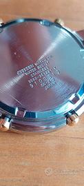 Citizen Crono Vintage in ottime condizioni con movimento 3560 interamente revisionato e perfettamente funzionante in tutto. Diametro cassa 39 mm. senza corona. Bracciale in acciaio dell'epoca adatto a polsi fino a 19 cm. Altro cinturino in pelle seminuovo. Vetro in ottime condizioni. Batteria nuova. Orologio completamente smontato e pulito, pulsanti lubrificati, scorrono perfettamente.