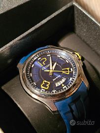 Quadrante di un bellissimo nero soleil e indici gialli.