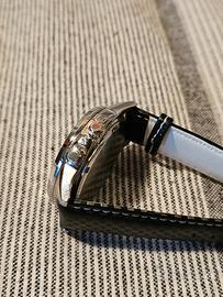 Quadrante di un bellissimo bianco in condizioni eccellenti con lunetta interna girevole sotto al vetro tramite la sua corona.