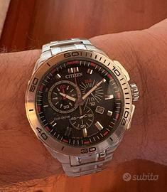 Citizen Crono Eco Drive Anno 2010 Cronografo Impremeabile 100 mt Vetro minerale Eco Drive a carica di luce Finestrella della data a ore 4 Bracciale in acciaio