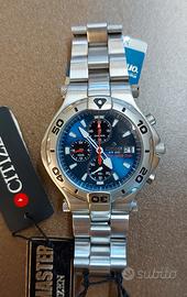 Nuovo, Orologio Citizen Promaster Eco-Drive DUO ref. BJ3050-56L, Crono, Movimento Eco-Drive Duo Promaster abbina il sistema di ricarica ad energia solare a quello cinetico del movimento automatico, quadrante blu, ghiera girevole, Cassa in acciaio, Diametro 42 mm, Vetro minerale, bracciale in acciaio con chiusura a scatto con sicurezza, impermeabilità 200m