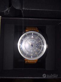 Raro Citizen Collezione Collezione serie AW, da uomo, comprato nuovo in negozio nel febbraio 2017, unico proprietario, pari al nuovo, senza alcun minimo danno, nemmeno un graffio, utilizzato in un’unica occasione, poi rimesso nella sua originale confezione. Tecnologia giapponese brevettata EcoDrive, segnatempo ecologico ad energia solare e artificiale, quadranti 12 e 24 ore, date display - funzione calendario con data, cronometro, lancette luminescenti, tachimetro, ghiera, corona push/pull, fondo serrato a vite, resistenza all’acqua fino a 100 m. Stile classico anni ’40, design da aviatore, meccanica Citizen, preciso nei movimenti e nella calibrazione delle lancette con il quadrante, con tecnologia avanzata Eco Drive (non c’è la batteria, a energia solare e a luce artificiale, alimentato dalla luce, qualsiasi luce: nessuna batteria, funziona e si ricarica automaticamente con la luce solare, luce diurna, ma anche attraverso la luce artificiale, sotto una qualsiasi luce, faro, lampione, lampada, torcia ecc. mantenendo poi una riserva di carica per 8 mesi - una singola ricarica completa dura fino a 240 giorni - nel caso venisse riposto al buio in un cassetto, per poi riattivarsi immediatamente appena rivolto verso una fonte di luce; con lancette e indici luminescenti per visione/luminosità notturna).