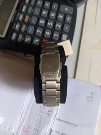 orologio Citizen in titanio eco driver, completo di scatola e garanzia, solo tempo quadrante grigio con indici laminati color rosa con cerchio sulla base della cassa , diametro cassa 35 senza corona.