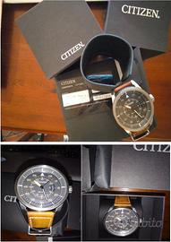 Raro Citizen Collezione da uomo acquistato nuovo in negozio nel 2017,pari al nuovo senza alcun danno, nemmeno un graffio,usato in un’unica occasione.Tecnologia EcoDrive ecologica, quadranti 12 e 24 ore, date display, calendario data, cronometro, lancette luminescenti,tachimetro,ghiera regolazione precisa, corona push/pull,fondo serrato a vite,resistenza acqua 100 m. Meccanica Citizen, preciso movimenti e calibrazione, tecnologia avanzata Eco Drive (no batteria, alimentato da qualsiasi luce: funziona e si ricarica con luce solare luce diurna e/o luce artificiale, faro lampione lampada torcia, riserva carica 8 mesi,singola ricarica fino 240gg nel caso riposto al buio;lancette e indici luminescenti x visione notturna).Cassa acciaio inossidabile,diametro 45 mm,spessore 13mm,cinturino in pelle.Silenzioso, subacqueo e impermeabilità 10 bar, cinturino robusto resistente, trattamento impermeabilizzante.Elevata qualità,nulla da invidiare a pezzi ben più costosi.Pari al nuovo, corredo originale.140€