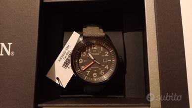- Cinturino In Tessuto Tecnico colore verde militare e Pelle sul retro.