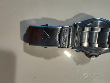 originale in ogni sua parte, riserva di carica di circa 2 anni. Usato, leggerissimi e impercettibili segni di usura, vetro perfetto come nuovo, diametro totale del quadrante 40 millimetri. Effetto fluorescente al buio. In acciaio inossidabile. Caratteristiche lancette a punta, sfondo del quadrante blu marino. Revisionato e perfettamente funzionante.