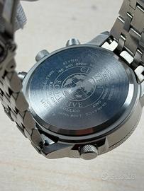 Cassa e bracciale in acciaio. Vetro zaffiro. Ghiera girevole bidirezionale (tramite corona a ore 8) con sistema regolo calcolatore. WR 20 bar.