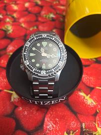 Vendo citizen promaster automatico200M come nuovo nooo perditempo disponibi anche 2 mitici promaster acqualand 6 viti anni 80 uno argento e altro oro entrambi funzionanti perfettamente 500 euro l’uno!!! Altro drivers 200 m fondo blu’ 250 euro noo perditempo.