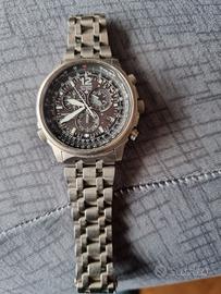 Citizen Promaster modello Pilot eco-drive, cinturino e cassa in acciaio, vetro zaffiro; in buone condizioni, completo di scatola e istruzioni originali.