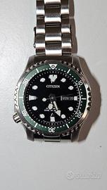Completo di Bombola, scatola originale, maglie aggiuntive bracciale. Versione con datario in italiano e bracciale originale Citizen. Ghiera verde, movimento automatico Miyota 8203 con carica manuale (no fermo macchina).