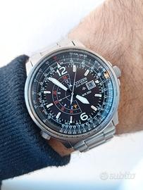 Vendo bellissimo Citizen Eco-Drive pre-Nighthawk( non radiocontrollato) con movimento solare (no batteria). Orologio sportivo stile pilot con regolo calcolatore e indicatore 24h.