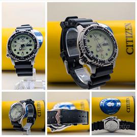 Vendo bellissimo e intramontabile Citizen Promaster Full-Lume. Caratteristiche tecniche -Cassa: in acciaio da 42mm -Fondello: a vite ORIGINALE (con pellicola) -Corona: ORIGINALE a vite -Quadrante: ORIGINALE -Lancette/sfere: ORIGINALI -Movimento: Automatico Myota -Funzione day/date -Cinturino: ORIGINALE -Altro: scatola originale a forma di bombola Funzionamento impeccabile in ogni sua componente. L'OROLOGIO VERRÀ GARANTITO 12 MESI SUL CORRETTO FUNZIONAMENTO. SEGUIRÀ REGOLARE FATTURA. Acquistare un orologio è sempre un'ottima idea...cosa aspetti?! SEGUI LA MIA PAGINA INSTAGRAM: vintage_experience_watches