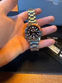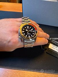 Buongiorno, vendo citizen pro master ref. NY0085-19E in colorazione nera con ghiera nero rossa modello acquistato nel 2019 completo di tutto il suo corredo originale come visibile in foto e utilizzato in poche occasioni. Presenta piccoli segni da normale utilizzo sul bracciale ma difficilmente visibili e un segnetto sul vetro vicino ad ore 7 anche lui visibile solo in particolari angolazioni. Prezzo leggermente trattabile nel limite della decenza.
