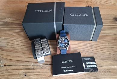 Cedo ma collezione privata orologio diver Citizen Promaster NY0100-50M TITANIUM FULL SET usato pochissimo, oserei dire pari al nuovo se non fosse per 2 impercettibili airlines sulla clasp del bracciale. Includo nella vendita ottimo cinturino in gomma come illustrato nelle immagini.