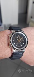 Bellissimo cronografo Citizen con movimento 3560 interamente revisionato e perfettamente funzionante in tutto. Diametro cassa 40mm senza corona. Cinturino generico nuovo di gomma identico all'originale. Ghiera girevole unidirezionale 60 scatti perfettamente funzionante. Vetro minerale nuovo. Batteria Renata nuova. L'orologio è stato completamente smontato, pulito e lubrificato, i pulsanti lubrificati scorrono perfettamente.