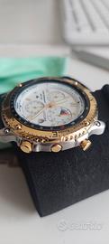 Stupendo Citizen Promaster Yachting WR100 con movimento 3510 interamente revisionato e perfettamente funzionante in tutto. Cronografo con suoneria, allarme, sveglia, timer, conto alla rovescia, calendario e indicazione di scarica della batteria. Orologio completamente smontato, pulito e lubrificato, anche i pulsanti puliti e lubrificati scorrono perfettamente. Un pezzo di storia della casa giapponese in condizioni strepitose. Diametro cassa 42mm senza corona. Fondello a vite con ancora la pellicola di protezione e il famoso logo Citizen. Cinturino in gomma generico nuovo e altro cinturino vintage nuovo in pelle per polsi più piccoli. Vetro originale con piccoli trascurabili segni. Batteria Renata nuova.