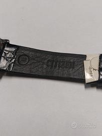 Vendo CITIZEN QUARTZ 6850-G80345, raro da trovare, lunetta placcata in oro. Quadrante di colore blu, lancette dorate. Allarme, cronografo e datario. Cassa da 36,2 mm adatta sia all’uso maschile che femminile. Cinturino in vera pelle lucertola originale Citizen. Orologio di alta qualità 100% made in Japan. Nuovo! Orologio del 1990, fondo di magazzino. Mai utilizzato con ancora presente il sigillo di carta sul cinturino. Scatola, cofanetto ed istruzioni originali, full set. Estrema rarità. Vintage.