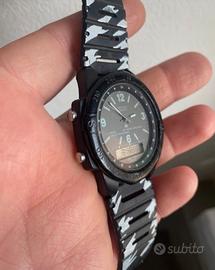 Orologio rarissimo, prodotto negli anni 80, cassa in fibra di carbonio. In condizioni estetiche e funzionali molto buone. Monta cinturino comune con ardiglione. Trattasi articolo usato che presenta leggeri segni d'uso che non inficiano tenuta ed estetica. Articolo ricercato dai collezionisti di settore. Le foto sono parte integrante della descrizione.