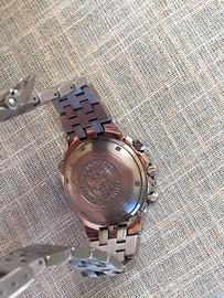 Crono ad 1/5 di sec con pulsante di comando "strong click", allarme con indicazione on/off sul quadrante. Vetro zaffiro, fondello serrato a vite. WR 20 bar. Cassa 46 mm