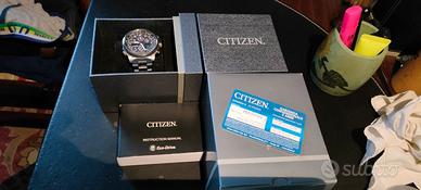 Splendido orologio utilizzato poco da unico proprietario, vetro zaffiro privo di graffi come nuovo, cassa e bracciale ottimi, solo alcuni graffi superficiali sulla placchetta di chiusura del bracciale (come da foto), ma nulla che non possa essere eliminato con apposite spazzole rotanti. Movimento Eco Drive a carica luce infinita per cui a vita non si cambia mai la batteria, con riserva di carica di 180 giorni al buio. Funzioni: radiocontrollato a 5 canali, ricezione del segnale orario USA, Europa, Cina e Giappone, world timer con orario di 43 città del mondo e ora GMT, crono a 1/100 di secondo fino a 24 ore, countdown a partire da 99 minuti, calendario perpetuo, funzione di illuminazione display digitali. Caratteristiche: cassa e bracciale in super titanio Ti+IP, peso soli 103 grammi, ghiera girevole bidirezionale con sistema regolo calcolatore, vetro zaffiro, quadrante color grigio scuro, quasi nero, impermeabilità WR 20 Bar, diametro cassa 45 mm. Il tutto completo di scatola, card di garanzia ufficiale (anche se ormai scaduta), maglie aggiuntive del bracciale e manuale di istruzioni in italiano.