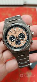 vendo citizen crono super titanium eco-drive, full set, ottime condizioni, Cassa e bracciale realizzati in titanio Grado 2 lavorato con la tecnologia esclusiva Citizen Duratect che conferisce un elevato livello di finitura estetica attraverso l’alternanza di superfici lucide e spazzolate e al tempo stesso ne incrementa la resistenza all’abrasione di oltre 5 volte rispetto all’acciaio inox. Fondo serrato a vite. Quadrante con pattern materico ispirato alla granulometria tipica del titanio. Vetro zaffiro. WR 10 bar.