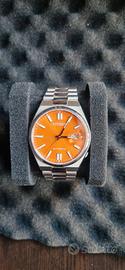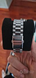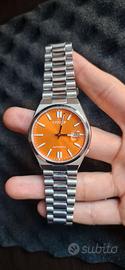 In vendita Citizen Tsuyosa automatico con quadrante arancione, in condizioni pari al nuovo. Orologio acquistato ad aprile 2025, utilizzato pochissimo e perfettamente funzionante. Il modello Tsuyosa si distingue per il suo design moderno e sportivo, con cassa integrata e grande presenza al polso. Dotato di movimento automatico di manifattura Citizen, visibile attraverso il fondello trasparente. Caratteristiche principali: Movimento automatico Citizen Diametro 40 mm Vetro zaffiro Bracciale originale in acciaio inox Corona a ore 4 Fondello a vista Dotazione: Scatola esterna e interna (full set) Manuali e documentazione originale Garanzia ufficiale valida 2 anni da aprile 2025 Tutte le maglie del bracciale Orologio ideale sia per uso quotidiano che per collezione. Ottimo rapporto qualità-prezzo nel segmento degli automatici. Disponibile per ulteriori foto o video su richiesta.