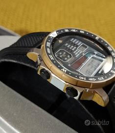 Bellissimo esemplare molto raro, sembra nuovo e indossato pochissimo, perfettamente funzionante, luce e sveglia ok, completo di scatola, garanzia dell'epoca e doppio cinturino.