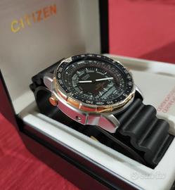 Citizen Wingman Promaster 8948-088344 K Vintage Raro Full Set Anni 80. Orologio perfettamente funzionante in ottime condizioni come da foto, cinturino nuovo di prima qualità, batteria nuova, a corredo scatola e garanzia dell'epoca