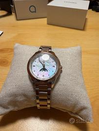 VENDO SPLENDIDO CITIZEN xC DAICHI - COLLEZIONE TOP DI GAMMA Orologio raffinato che unisce tecnologia giapponese d'avanguardia e design elegante. Perfetto per chi cerca un pezzo di alta qualità, leggerissimo e sempre preciso. • MODELLO: Citizen xC (Cross-Sea) serie Daichi. • MOVIMENTO: Eco-Drive a carica luce (non necessita mai di cambio batteria). • MATERIALE: Super Titanio con finitura Sakura Pink (5 volte più resistente dell'acciaio e anallergico). • QUADRANTE: In madreperla con complicazione Sun & Moon (indicatore giorno/notte) e indici a diamante. • FUNZIONI: Radiocontrollato (si regola da solo via radio), Ore del Mondo, Vetro Zaffiro antigraffio. • CONDIZIONI: Ottime condizioni estetiche e funzionali. Venduto con scatola originale Citizen (come da foto).