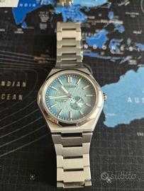 CITIZEN ZENSHIN 60 SUPER TITANIO NK5020-58L Usato pochissimo come si può vedere dalle foto, sempre in garanzia. Corredato di scatola e controscatola, maglie aggiuntive del bracciale. Perfettamente funzionante e tiene bene il tempo. Bellissimo esteticamente ma lo vendo per passaggio a fascia di orologio più alta. Referenza NK5020-58L Funzioni Solo tempo, con piccoli secondi Movimento Automatico cal 8322 Riserva di carica 60 ore Fondello A vista Materiale cassa Super titanio Finitura cassa Satinata Vetro Zaffiro Cinturino Super titanio satinato Colore quadrante Azzurro Diametro cassa 40 mm Impermeabilità 10 bar (100 metri No prezzo a ribasso e solo persone realmente interessate. Per ogni info sono a vostra completa disposizione.