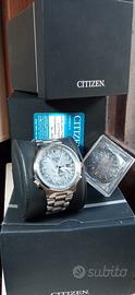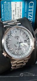 Orologio Citizien As2031-57 Radiocontrollato Uomo Alimentazione solare ( Eco-Drive) display analogico funzioni cronografo impermeabilità oltre 10 atm waterproof. Materiale cassa titanio Colore cassa argento Colore Quadrante Madreperlato ( più unico che raro!) Cinturino in acciaio Confezione originale con libretto/manuale allegato.