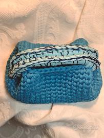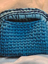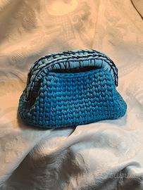 Borsa artigianale ✨ fatta interamente a mano di un colore turchese, misurazione base della borsa e di 19cm , può contenere portachiavi portamonete etcc..