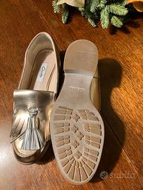 Mocassini Clarks in pelle color oro con nappa argento, praticamente nuovi con suola vibram, perfetta per l'inverno. Numero 38 italiano UK5