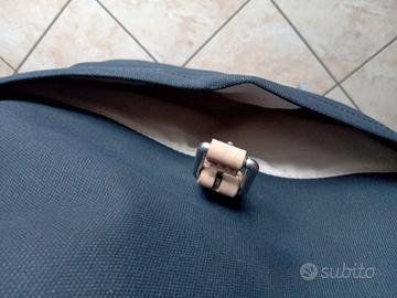 Fibbia per chiusura esterna, tasca frontale e all'interno tasca piccola con zip e scompartimento porta pc.