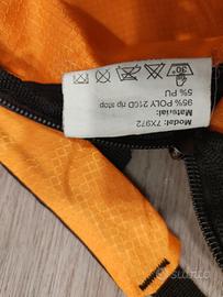 richiuso nell’apposita tasca a zip, occupa pochissimo spazio ed è facilmente trasportabile. La stessa tasca a zip, una volta aperto lo zaino, rivoltandola funge da tasca interna per gli effetti personali etc.;
