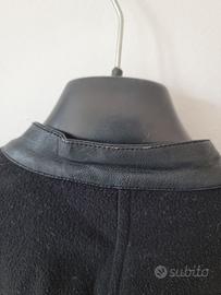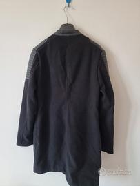 Cappotto mezza stagione con spalle in ecopelle indossato con solo segni di usura sul colletto e bottoni di chiusura colletto (vedi foto)