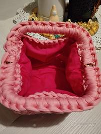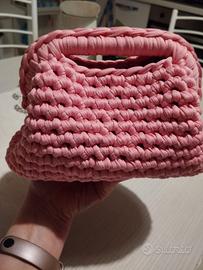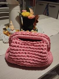 Clucth bug realizzata all' uncinetto con fettuccia in lycra, chiusura click clack di 16 cm e foderata internamente