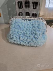 Borsa realizzata a mano con fettuccia e pelosetto, 22×14