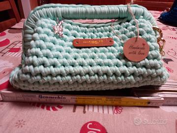 Borsa fatta a uncitetto manico di 20cm fondo di circa24,5. con catenella in tinta.