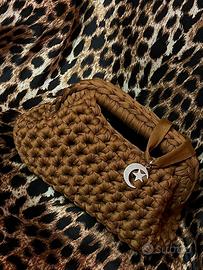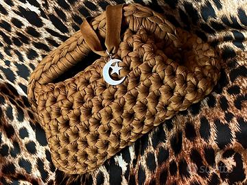 Clutch bag all’uncinetto color marrone cioccolato con chiusura da 19cm ma molto capiente! Con choker abbinato e ciondolo a scelta! ❤️