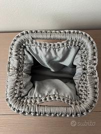 Completata da base in ecopelle color argento per maggiore stabilità e interno foderato in raso grigio, morbido e curato.