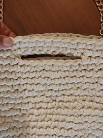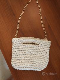 interamente cucita a mano , effetto paglia può essere arricchita di accessori o resa semplice senza nessun accessorio, così come in foto con clip di chiusura e catenella 18€